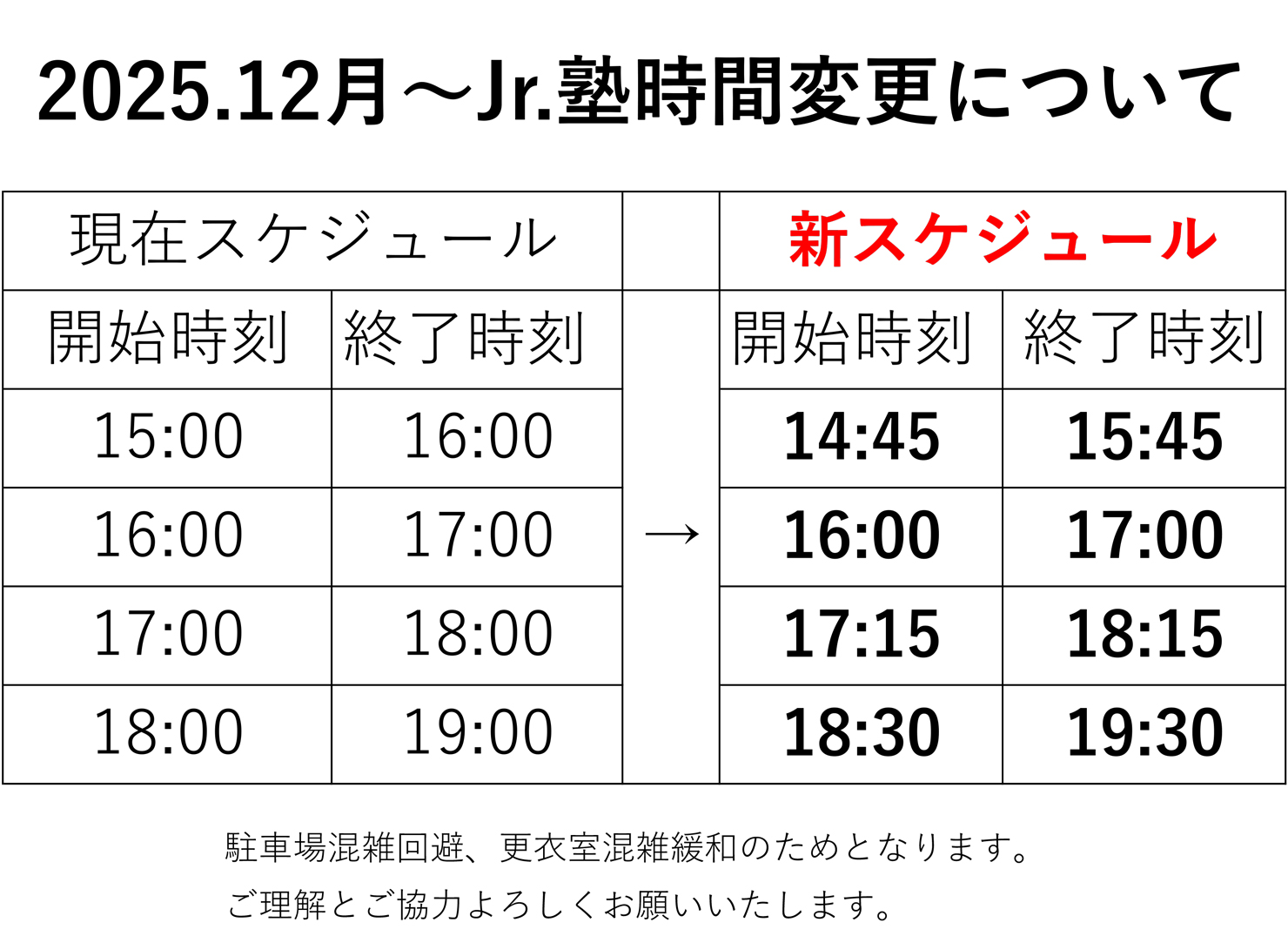 【Jr.塾 タイムスケジュール変更のお知らせ】